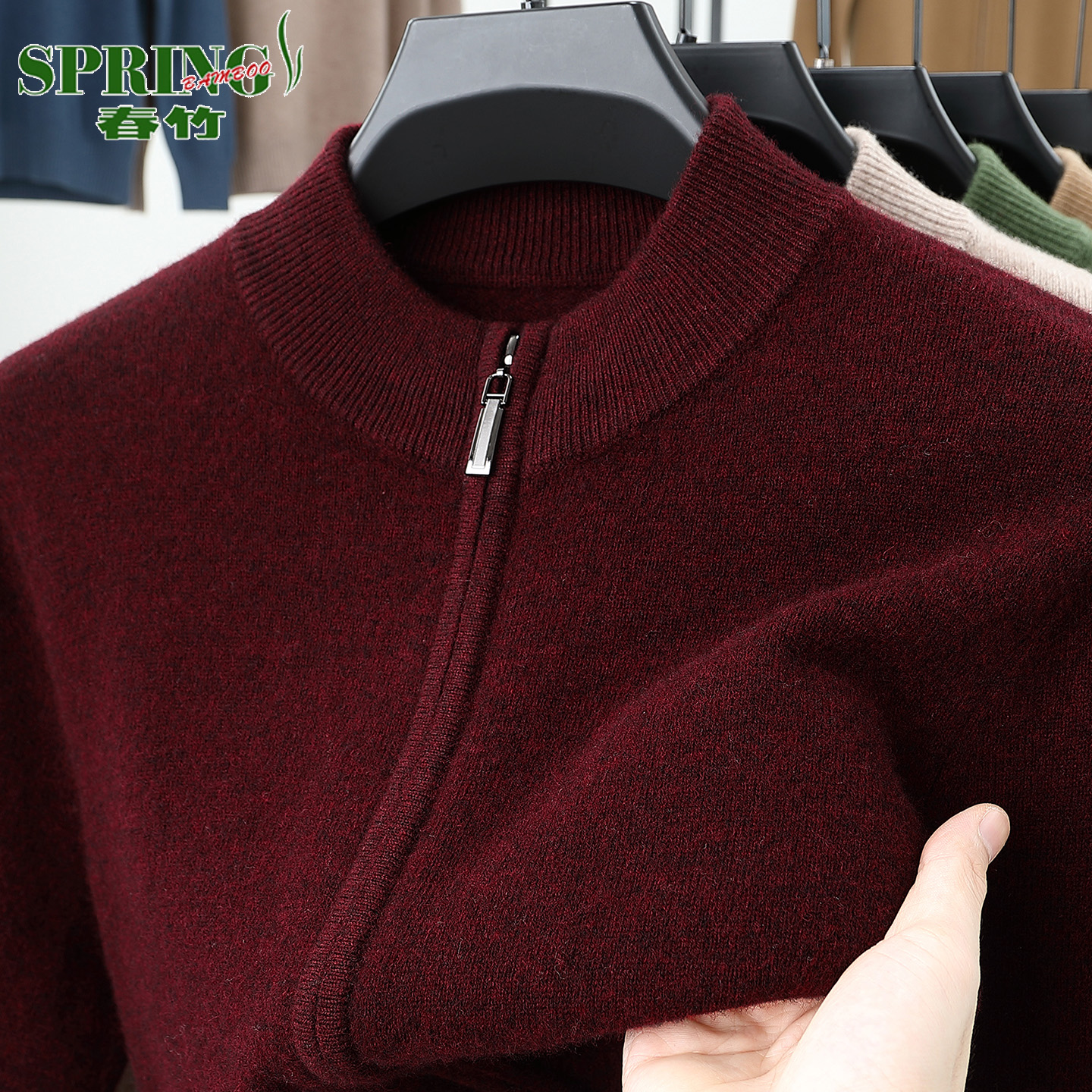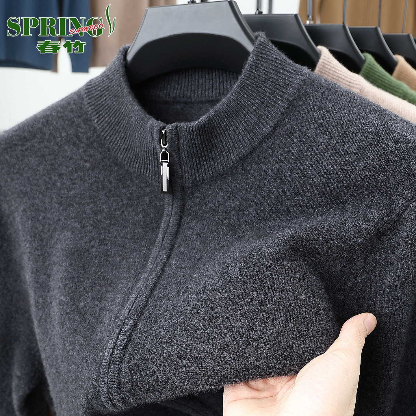 羊绒衫男士2025新款毛衣加厚半高拉链领针织衫上衣秋露春竹羊毛衫