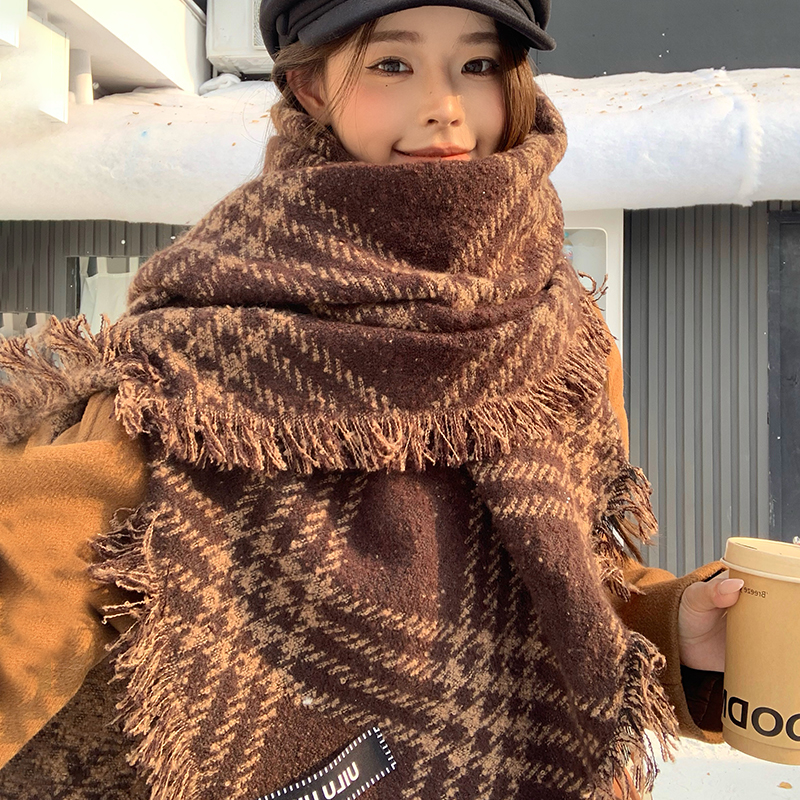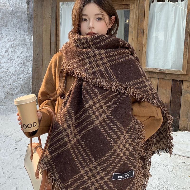 2025年秋冬季新款格纹流苏围巾女加厚保暖仿羊绒韩版时尚百搭围脖