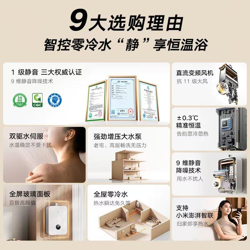 【新品】小米米家智能燃气热水器MJ08,专为现代家庭打造,集静音、零冷水、增压三大核心优势于一体。采用先进静音技术,运行低至45分贝,营造安静舒适沐浴环境。搭载零冷水功能,即开即热,告别等待,提升用水体验。内置智能增压系统,高层、老房水压不稳也能畅享澎湃水流。支持米家APP远程操控,预约加热、温度调节一手掌握,智能便捷。适配天然气,节能环保,安全可靠。简约白色机身,百搭家居风格。MJ08以科技赋能生活,带来高效、舒适、智能的洗浴新体验,是品质家居的理想之选。
