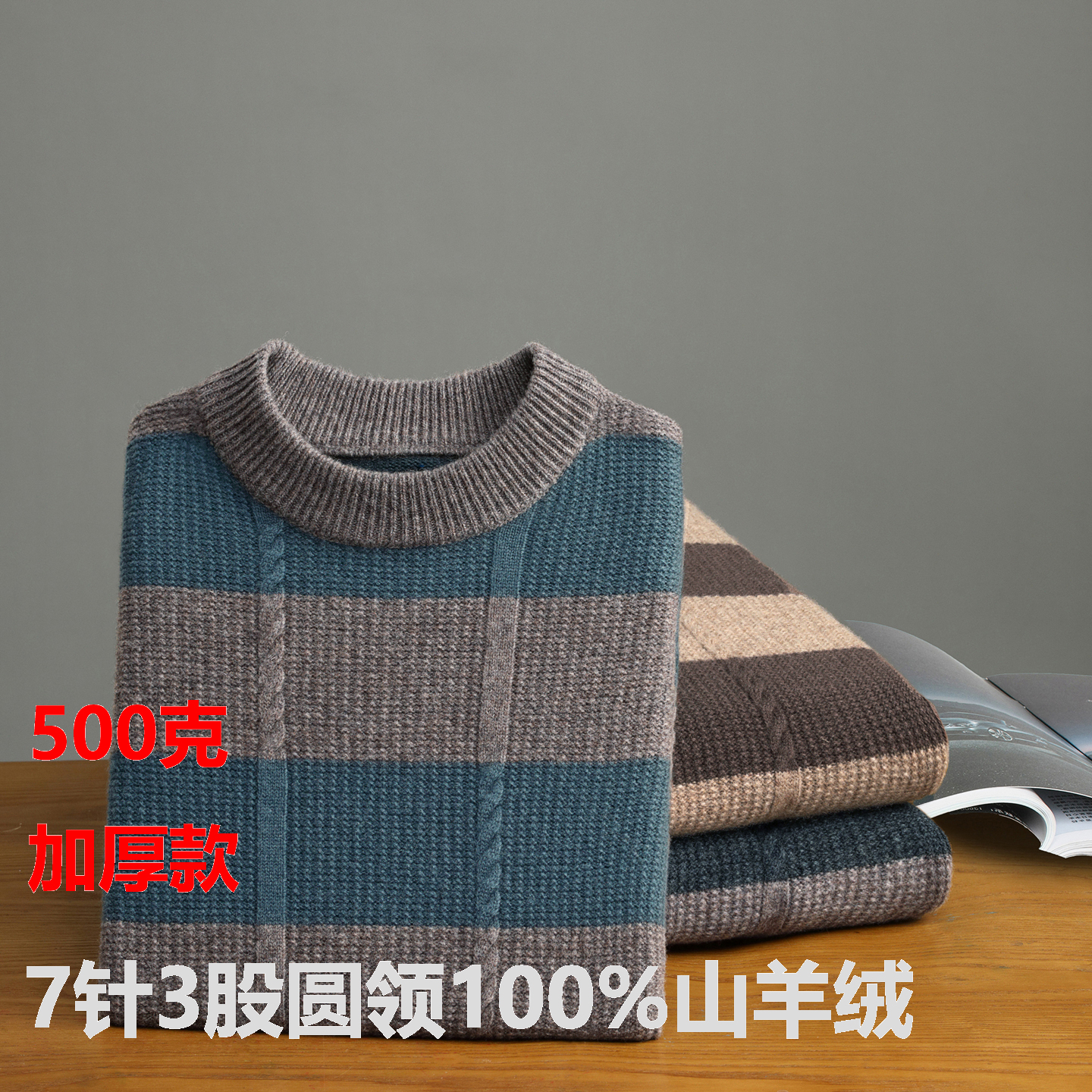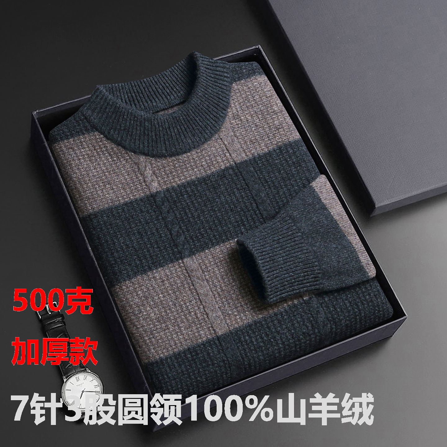 淘宝鄂尔多斯市100%纯山羊绒衫男士加厚圆领毛衣秋冬季新款针织羊毛衫