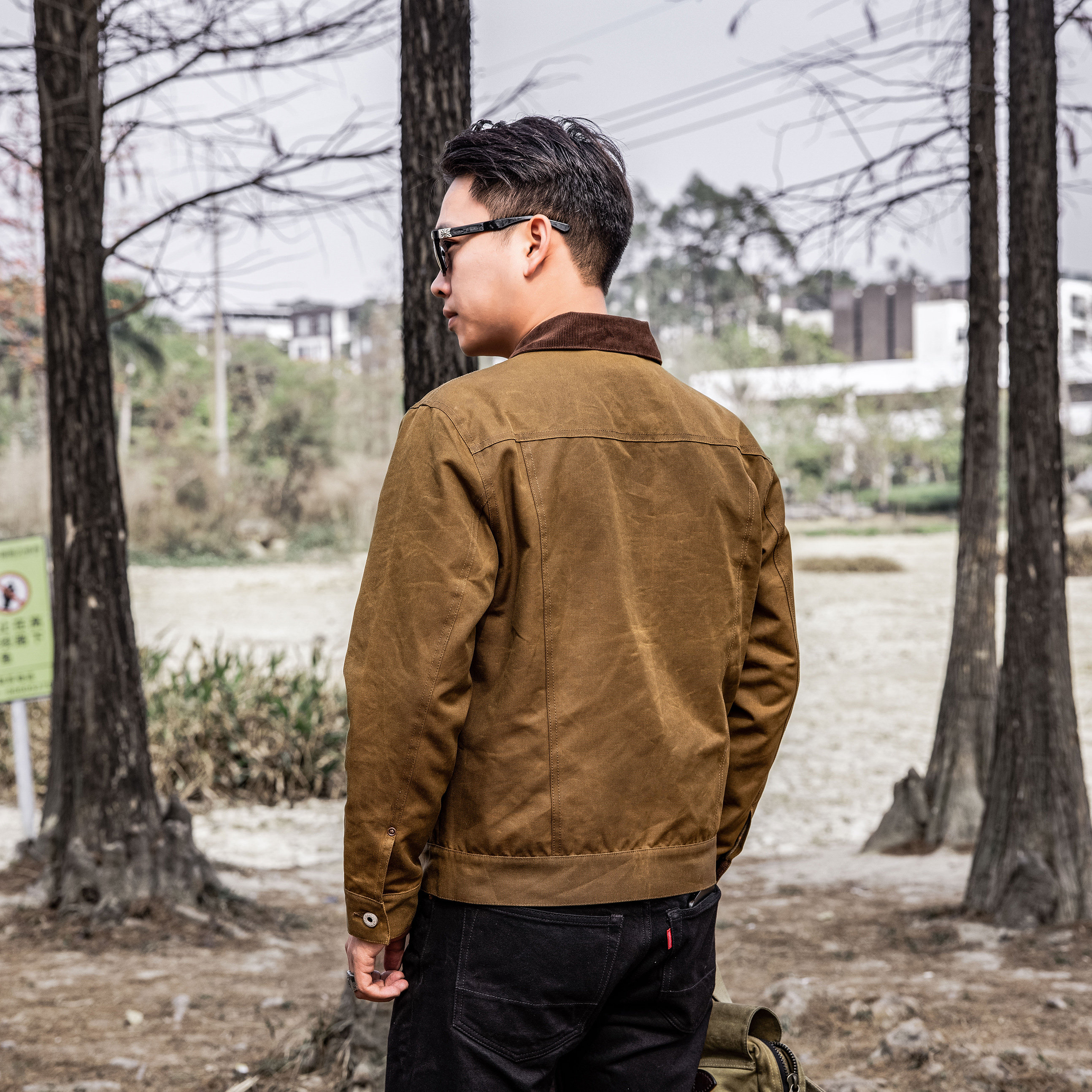 淘宝红风 美式复古TYPE3油蜡夹克灯芯绒领工装外套男春秋款 防水面料