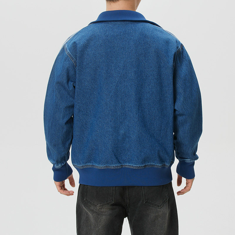 美式复古水洗假两件衬衫拼接立领牛仔夹克男春季宽松痞帅通勤外套