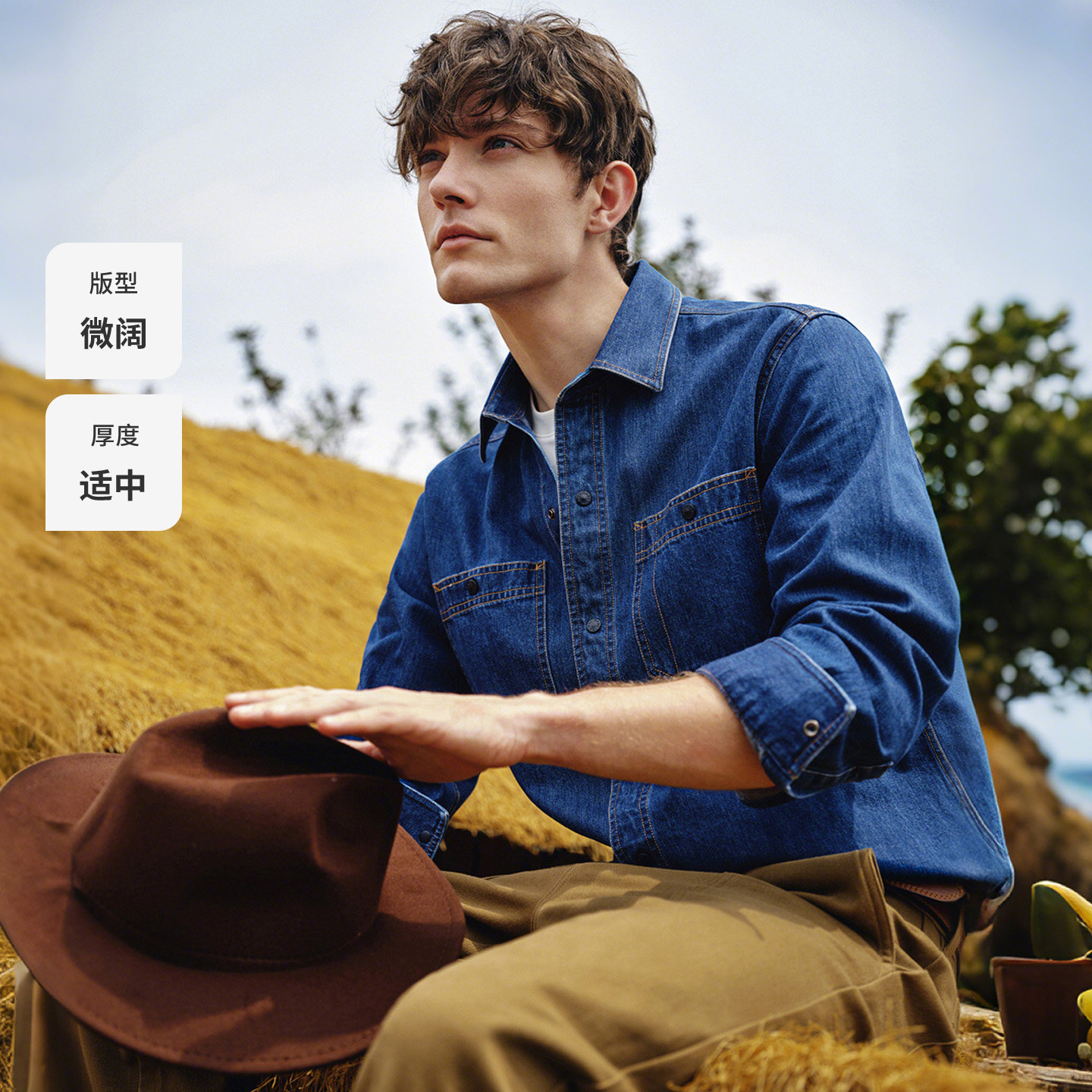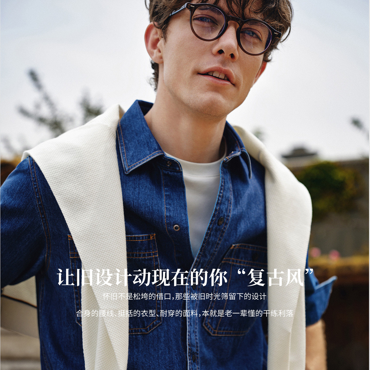 天HLA/海澜之家三体联名翻领复古牛仔夹克25秋新休闲巴恩风外套男装