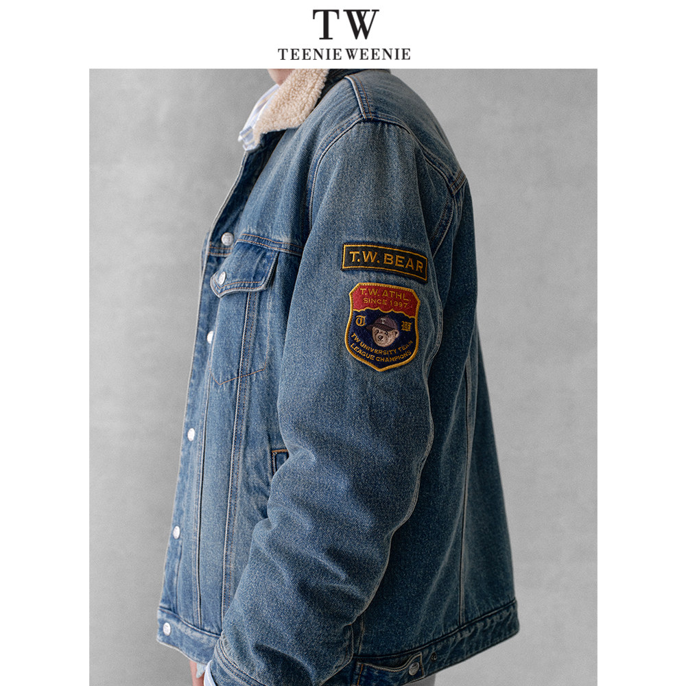 天猫Teenie Weenie小熊男装休闲通勤牛仔拼接仿羊羔毛翻领夹克外套