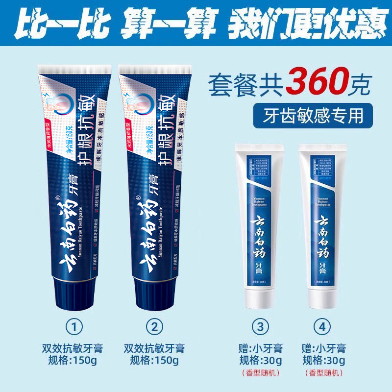 天猫云南白药牙膏双效抗敏150g*2清洁口气抗敏感牙龈护理牙膏套装官方