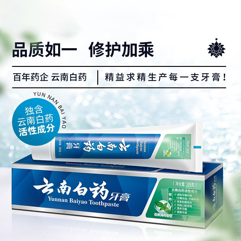 天猫云南白药牙膏劲爽薄荷香型205g清新口气清洁口云南白药牙膏官方店