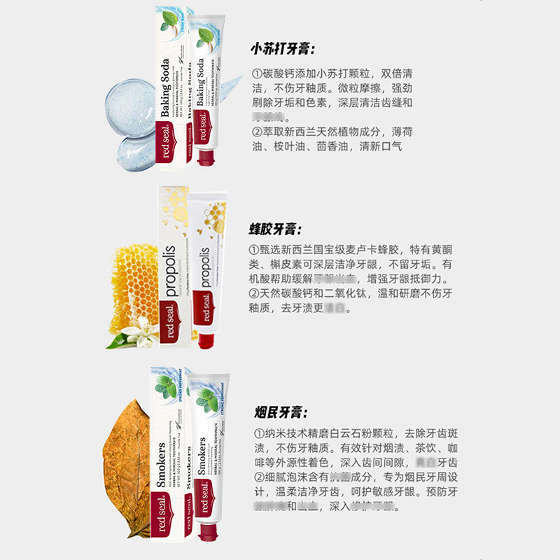 淘宝新西兰red seal红印小苏打蜂胶清新口气牙齿去黄去牙渍无氟牙膏
