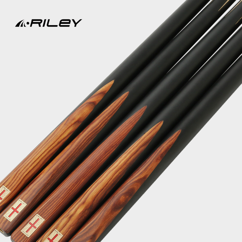 RILEY(莱利)英式台球杆小头黑8斯诺克桌球杆采用经典3/4分体设计,兼顾稳定性与便携性,适合斯诺克与中式八球多种玩法。其精选优质白蜡木前节搭配硬木后把,提供出色的传力性能和细腻的手感。小头杆设计(通常11.5mm左右)精准控制母球走位,提升击球准度与旋转效果。黑8配色沉稳大气,彰显英伦台球传统风范。RES中式通杆版本则为一体化设计,增强整体刚性,适合偏好通杆手感的玩家。RILEY作为百年台球品牌,工艺精湛,品质可靠,是进阶玩家与专业爱好者的理想之选。