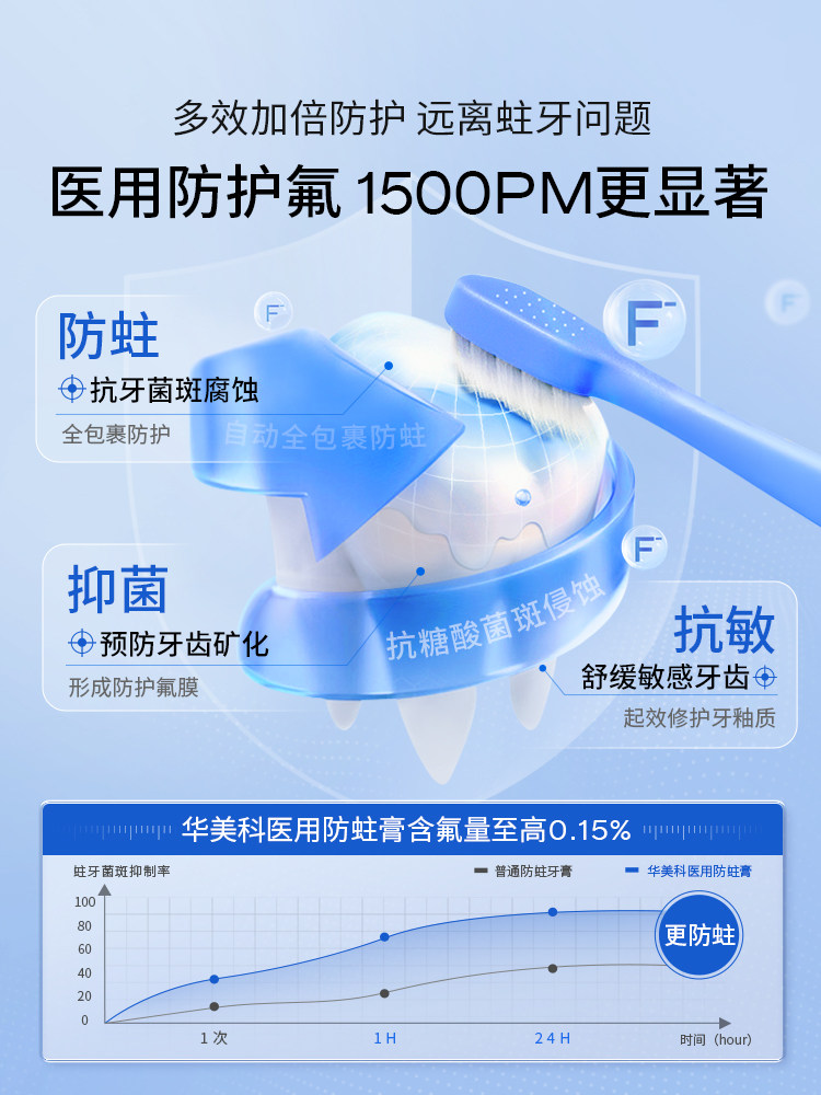 医用含氟牙膏专为成人防蛀牙、修复早期龋齿及抗敏脱敏设计,采用高纯度氟化钠或单氟磷酸钠成分,有效促进牙釉质再矿化,增强牙齿抗酸蚀能力,从源头预防蛀牙。其独特配方能深入牙本质小管,封闭敏感通道,显著缓解冷热酸甜刺激引发的牙痛。经临床验证,长期使用可修复微小龋损,强化牙体结构。本品由官方旗舰店直供,确保正品品质,安全无刺激,适合敏感牙齿及有蛀牙困扰人群日常护理。坚持早晚使用,搭配正确刷牙方式,守护口腔健康,重现坚固亮白笑容。