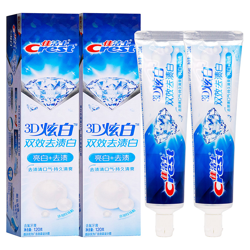 天猫佳洁士双效去渍白牙膏120克亮白+去渍成人中老年人外用刷牙漱口用