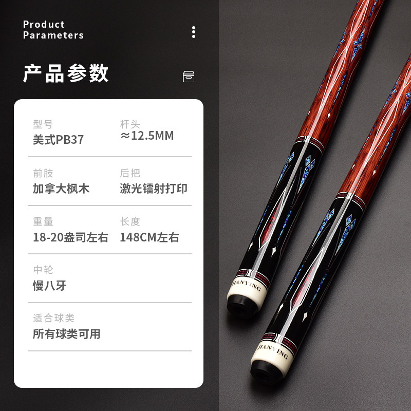 天猫健英台球杆PB37中式八球美式九球杆大头黑八8分体桌球杆11.5/12.5