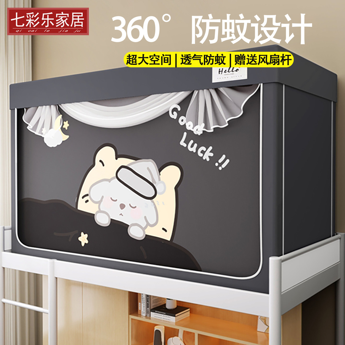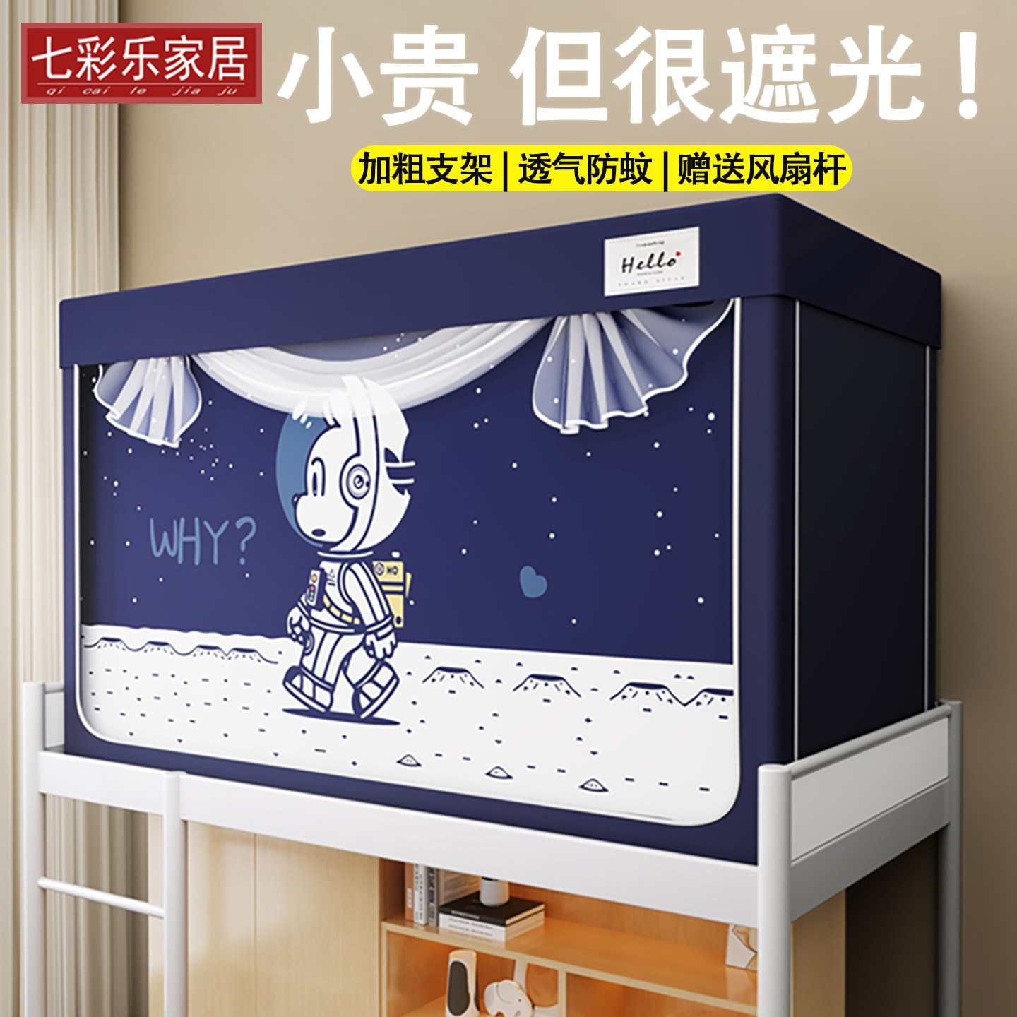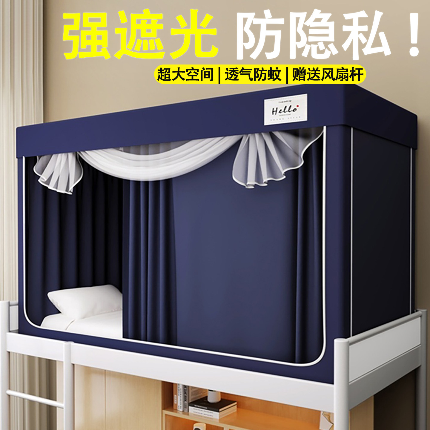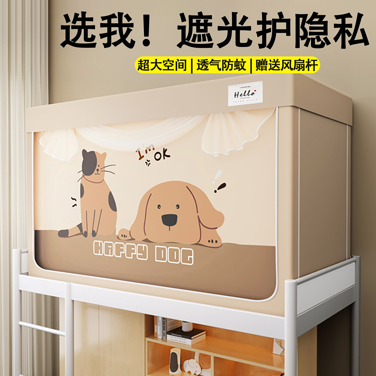 淘无涂层梭织布全包强遮光大学生宿舍蚊帐床帘免安装一体式支架上铺