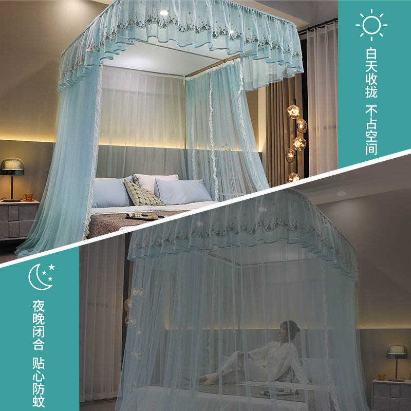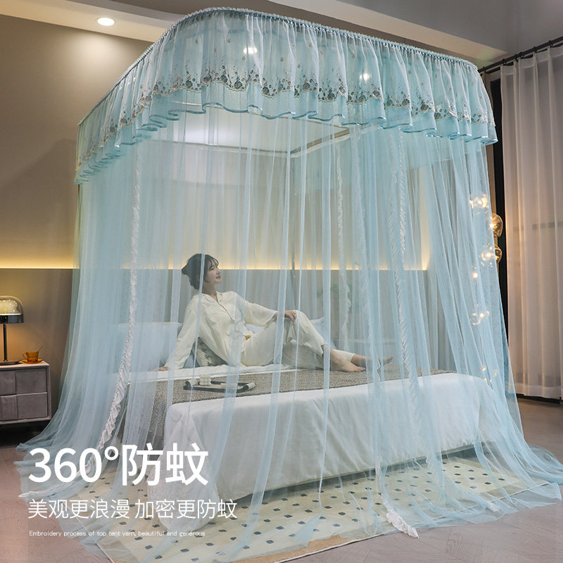 天猫u型导轨蚊帐家用2025新款免安装卧室轨道免安支架杆加厚落地床帘