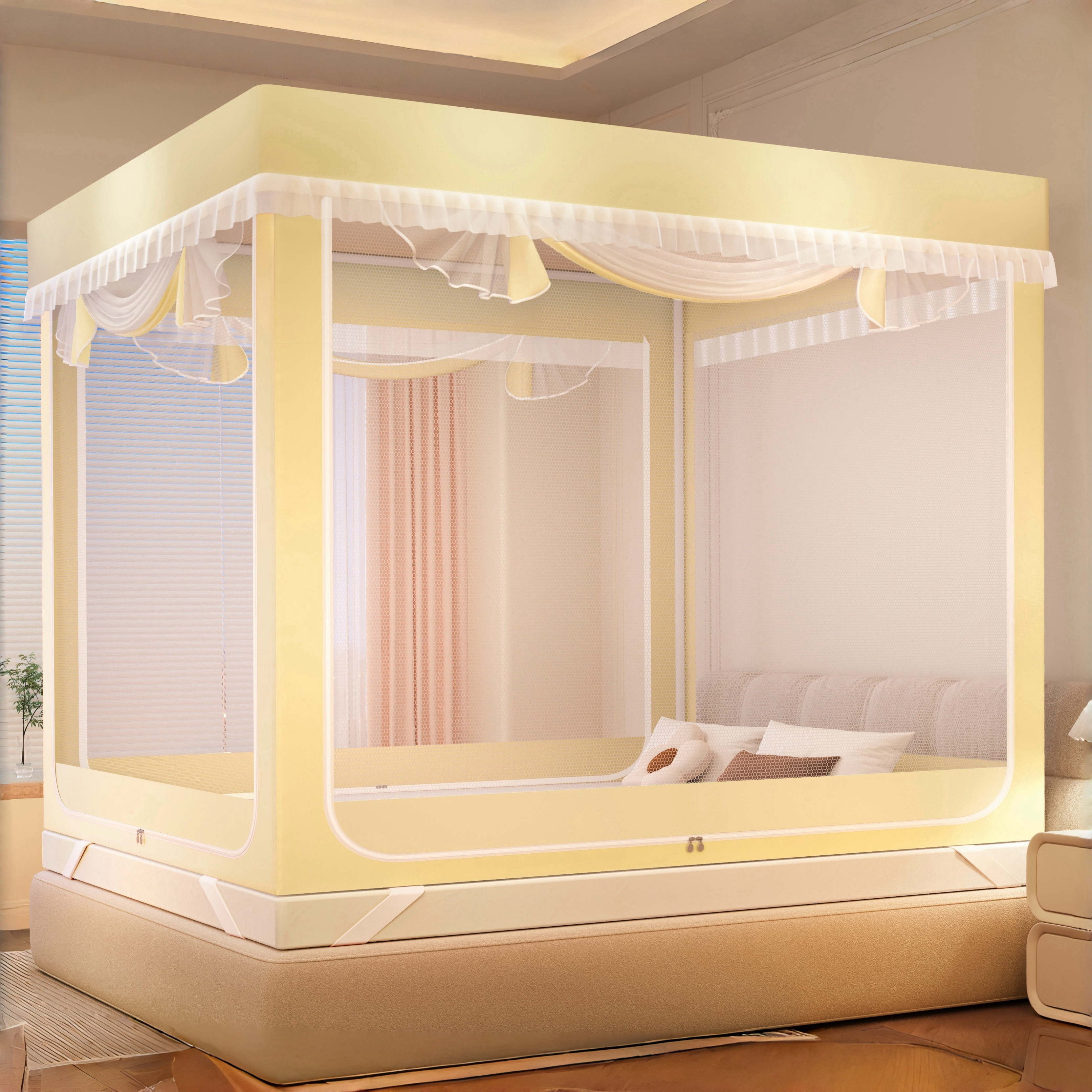 全罩式蚊帐家用卧室2025新款高端婴儿防摔蒙古包遮光床帘布厚支架