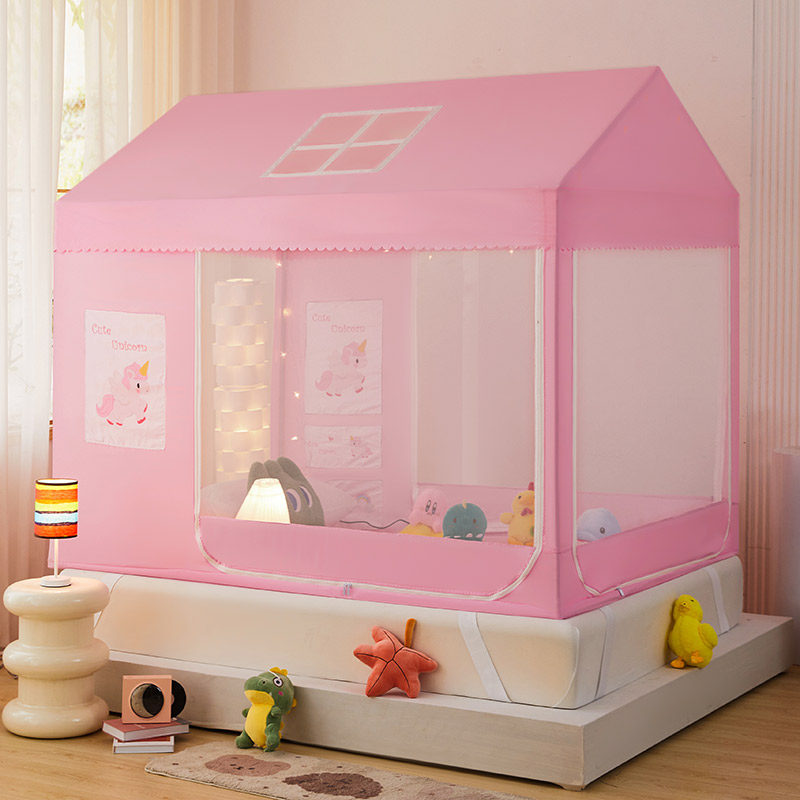 淘宝儿童蚊帐小房子防摔全底拼接床上帐篷女孩遮光床帘挡风1米35定制