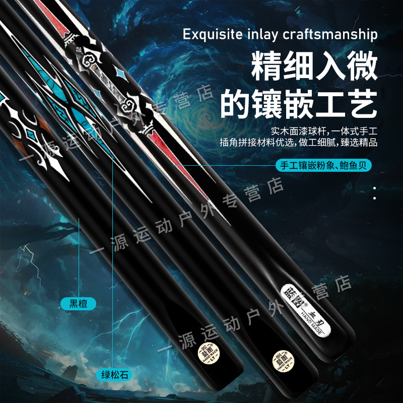 天猫蓝图01台球杆小头一体式通杆血刃磐石中式黑八实木手工免漆桌球杆
