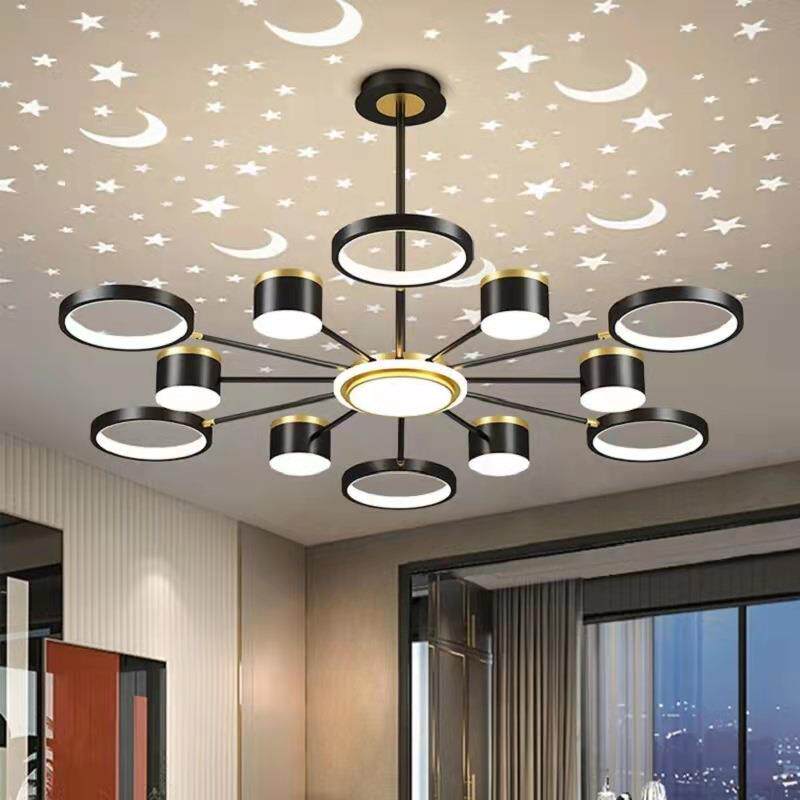 2022年新款北欧轻奢现代极简吊灯,以简约大气的设计语言诠释家居美学。采用优质金属与磨砂玻璃材质,线条流畅,质感高级,融合轻奢元素与北欧风格,营造温馨而不失格调的居家氛围。独特的星空造型设计,灯光柔和均匀,宛如夜空繁星点点,为餐厅、客厅增添浪漫艺术气息。适配多种装修风格,尤其适合现代、极简、轻奢家居空间。作为年度网红爆款主灯,不仅照明功能强大,更成为提升空间颜值的焦点装饰,深受年轻消费者喜爱,是打造理想家居的理想之选。