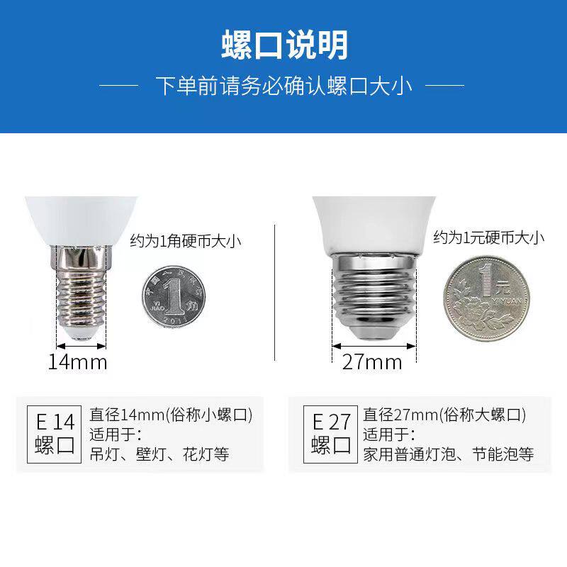 淘宝LED小螺口节能灯家用E27大口超亮护眼暖白黄光水晶吊灯螺纹球泡灯