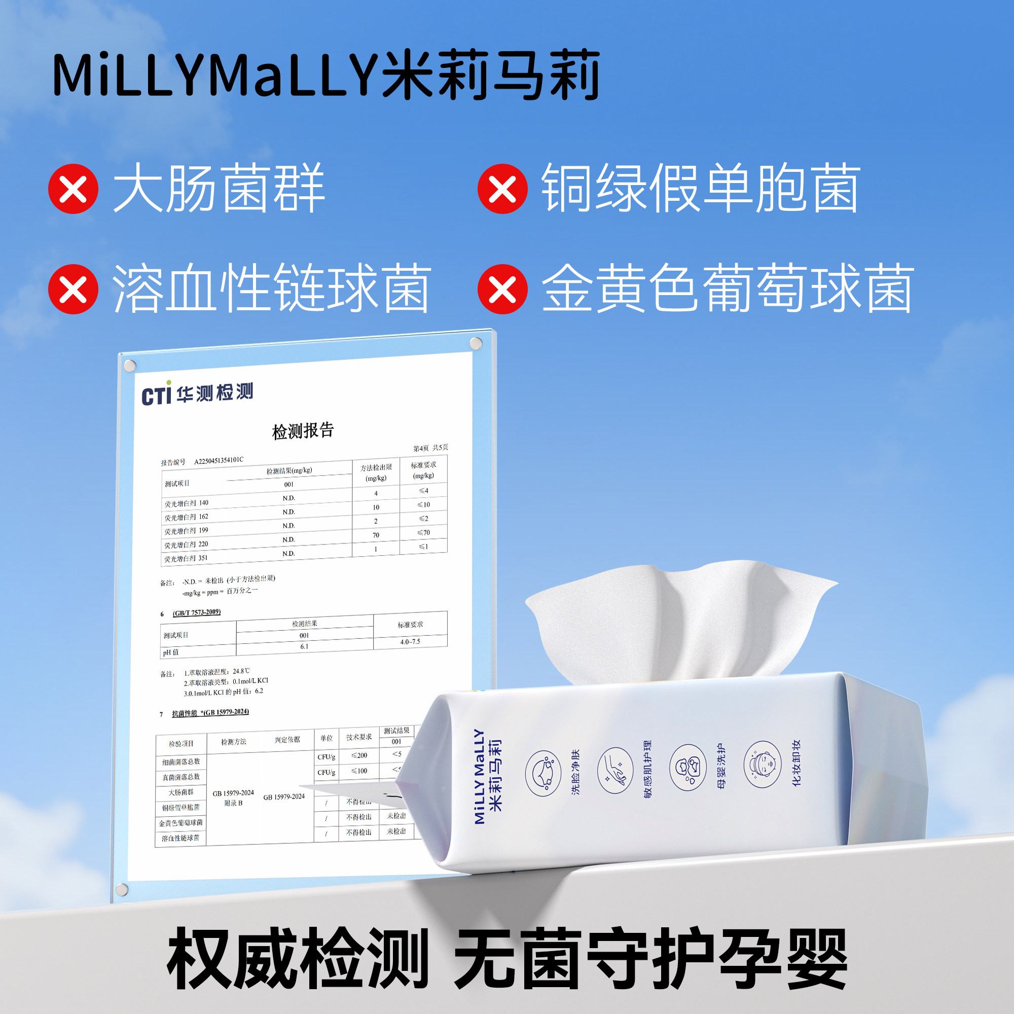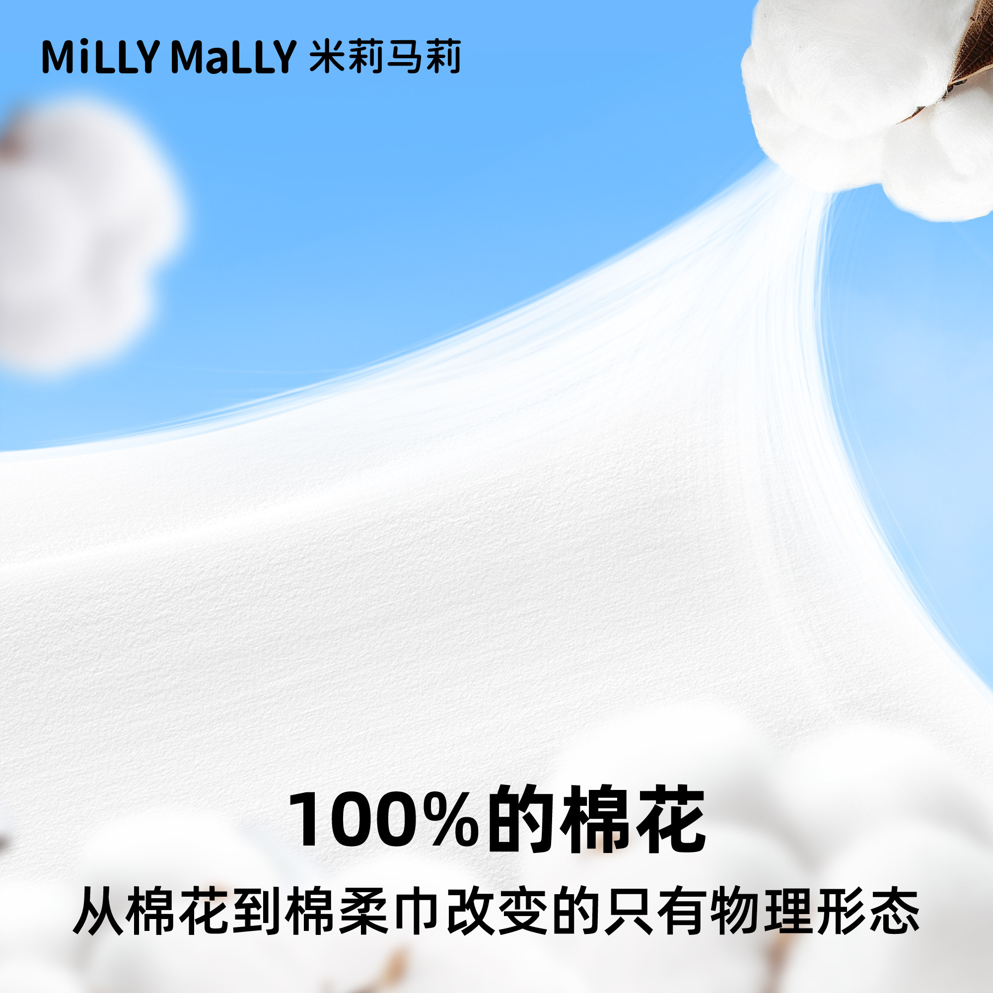【100%棉】米莉马莉洗脸巾,采用优质全棉材质,亲肤柔软,无刺激,适合敏感肌肤及婴幼儿娇嫩肌肤使用。加厚设计,吸水性强,不易掉絮,干湿两用,可轻松应对日常洁面、卸妆、婴儿擦脸等多种需求。壁挂式包装,取用便捷,节省空间,居家或旅行皆宜。产品通过安全检测,不含荧光剂、漂白剂等有害成分,使用更安心。无论是日常护理还是宝宝护理,米莉马莉一次性全棉柔巾都是您值得信赖的选择,让每一次清洁都温和舒适,呵护全家肌肤健康。