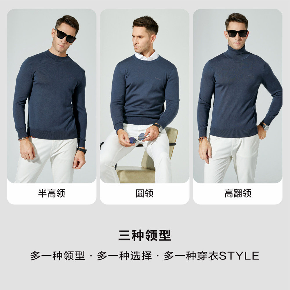 淘宝雷迪波尔羊毛衫男2023冬季新款可机洗保暖内搭针织毛衣男装打底衫