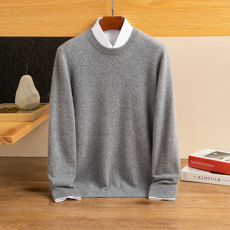 彰显风度!纯山羊绒衫男士圆领羊绒毛衣秋秋冬宽松针织打底衫男式