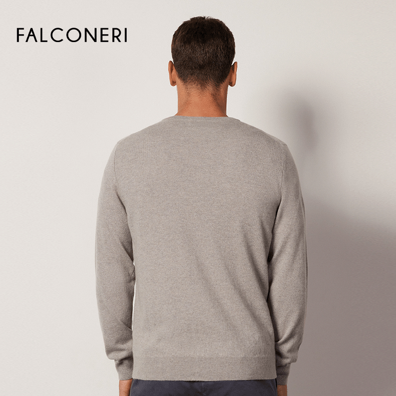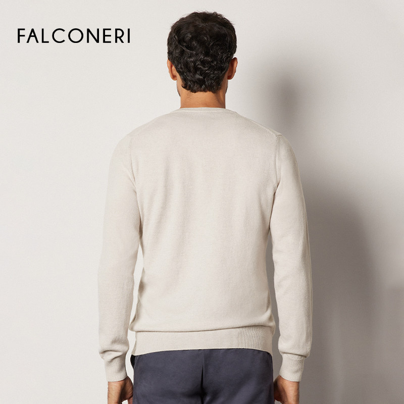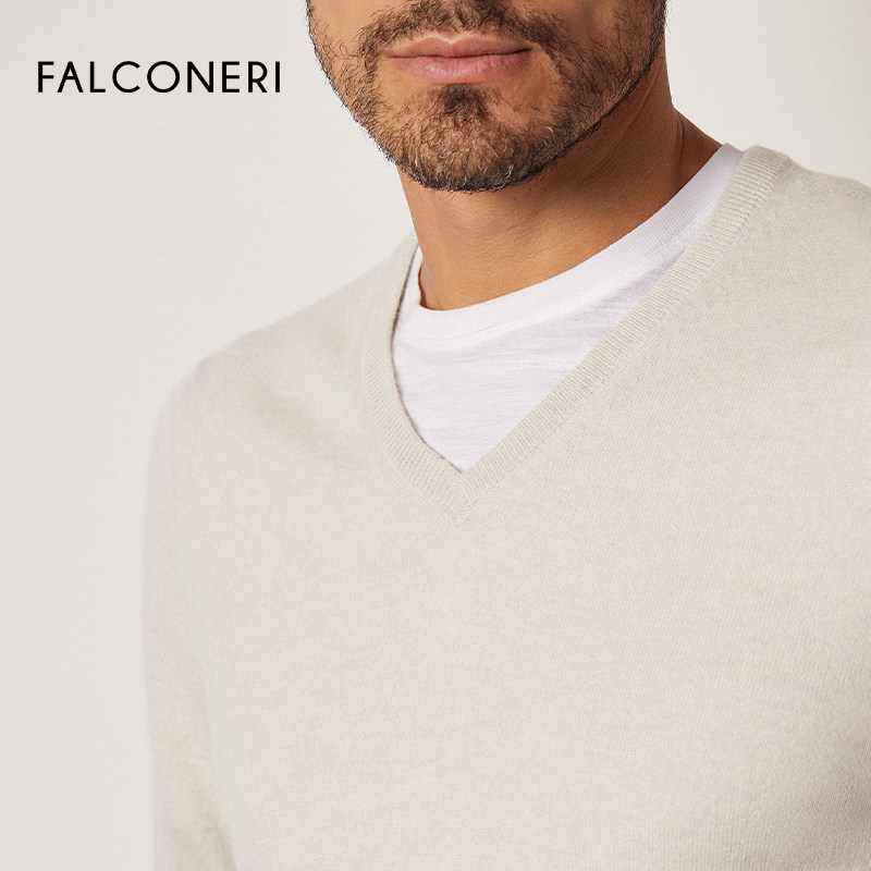 FALCONERI男修身V领原色山羊绒毛衣针织衫UML228M,精选优质山羊绒材质,触感柔滑细腻,轻盈保暖,亲肤透气。简约V领设计,修饰颈部线条,展现优雅绅士气质;修身剪裁贴合身形,凸显男性挺拔轮廓,适合单穿或内搭。原色系色彩经典百搭,轻松驾驭商务休闲多种场合。精湛针织工艺,走线工整,耐穿不易变形。无论是搭配西裤打造干练造型,还是配合牛仔裤营造随性风格,皆能彰显低调奢华品味。FALCONERI以匠心品质,为现代男士提供舒适与风尚兼具的秋冬之选。