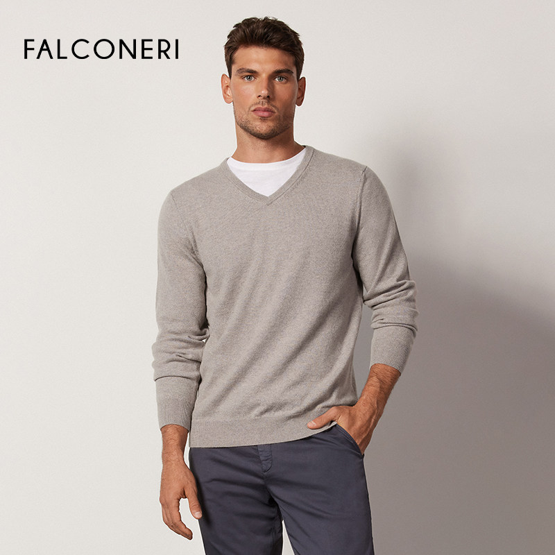 天猫【季末折扣】FALCONERI男修身V领原色山羊绒毛衣针织衫UML228M