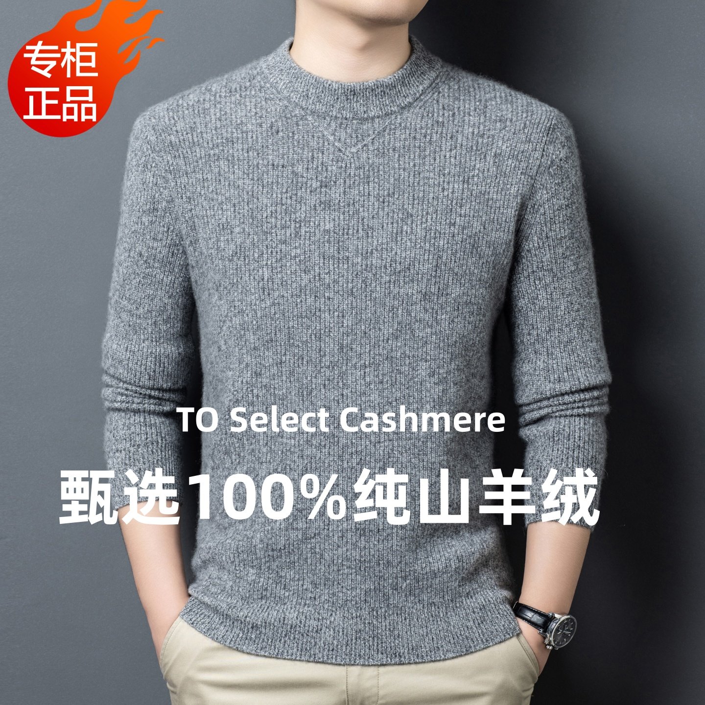 淘宝春竹男士纯羊绒100%纯山羊绒衫冬季新款圆领加厚夹花保暖高档毛衣