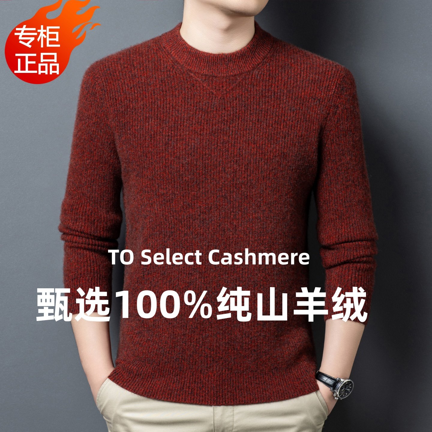 淘鄂尔产双股加厚羊绒衫男100%纯山羊绒半高领毛衣针织衫大码羊毛衫