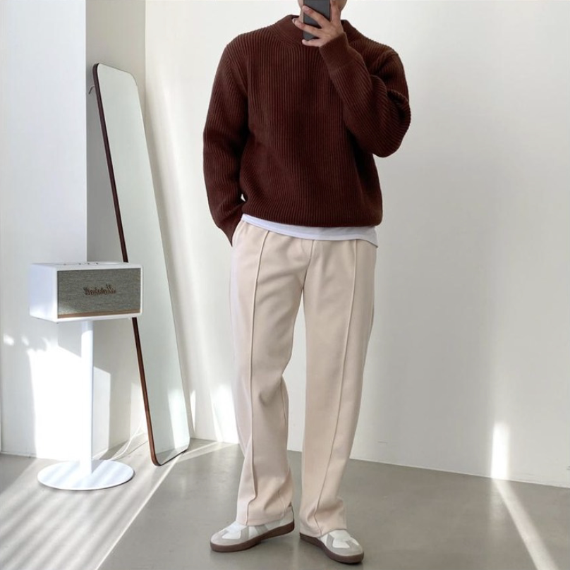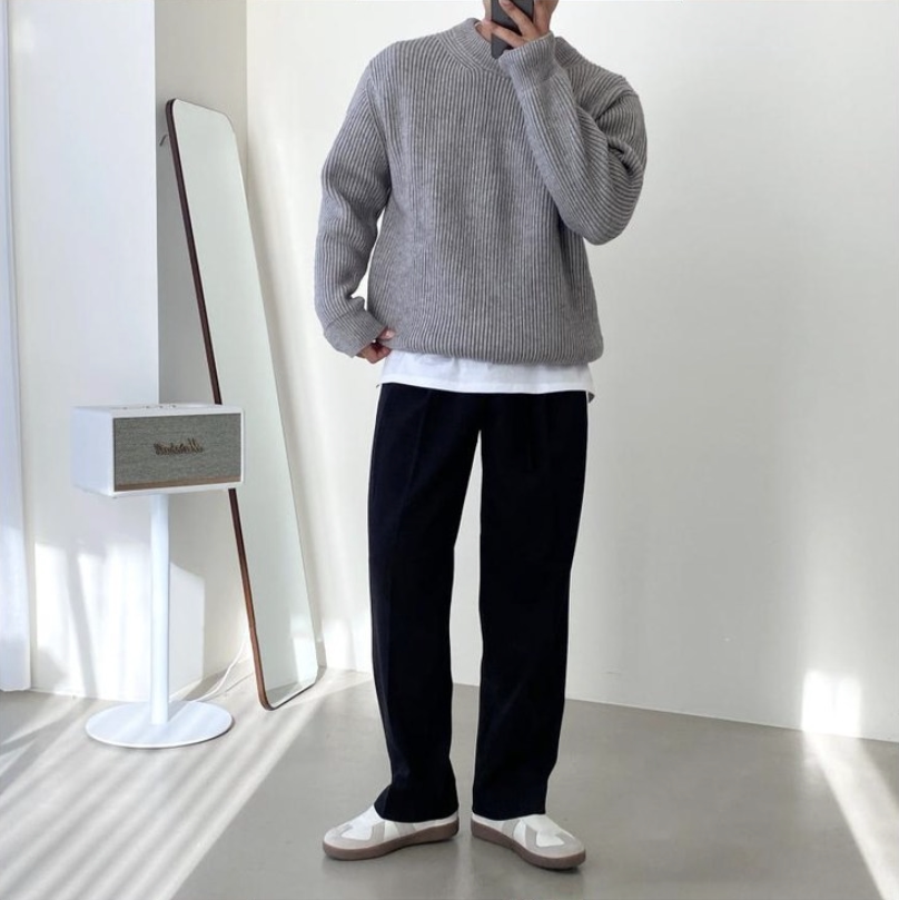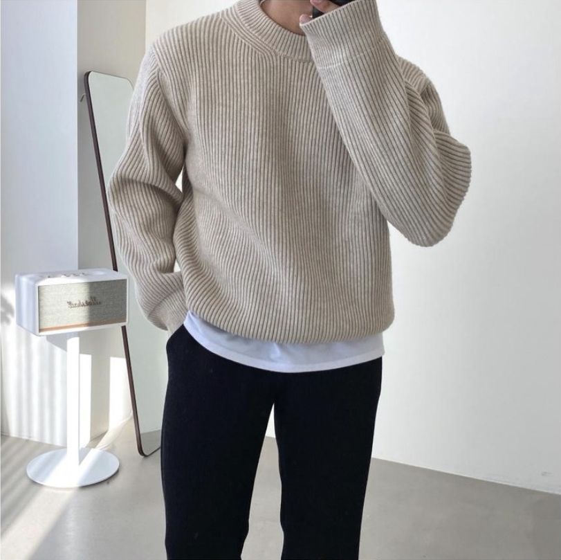 淘NYKBOOS男装高档男士水貂绒毛衣秋冬加厚高领套头打底保暖针织衫