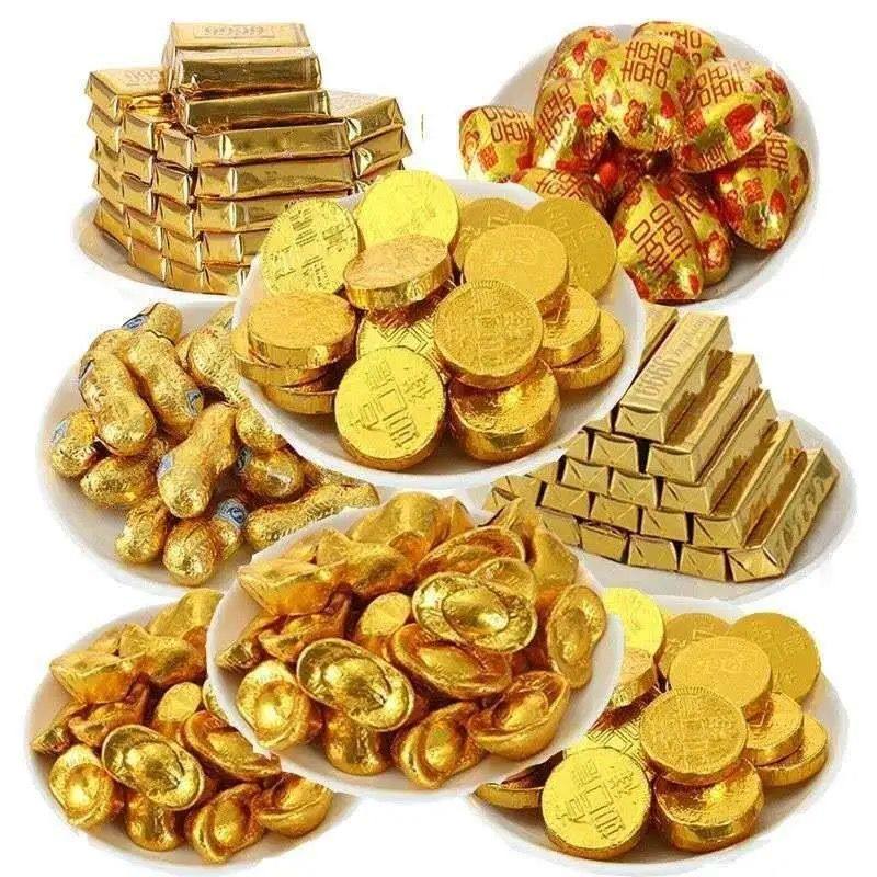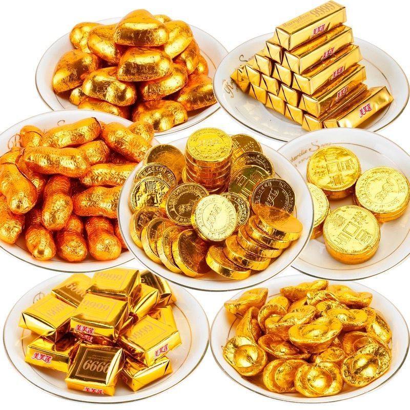 天猫金币花生金条元宝巧克力散装500g生日蛋糕装饰烘焙结婚庆典喜糖果