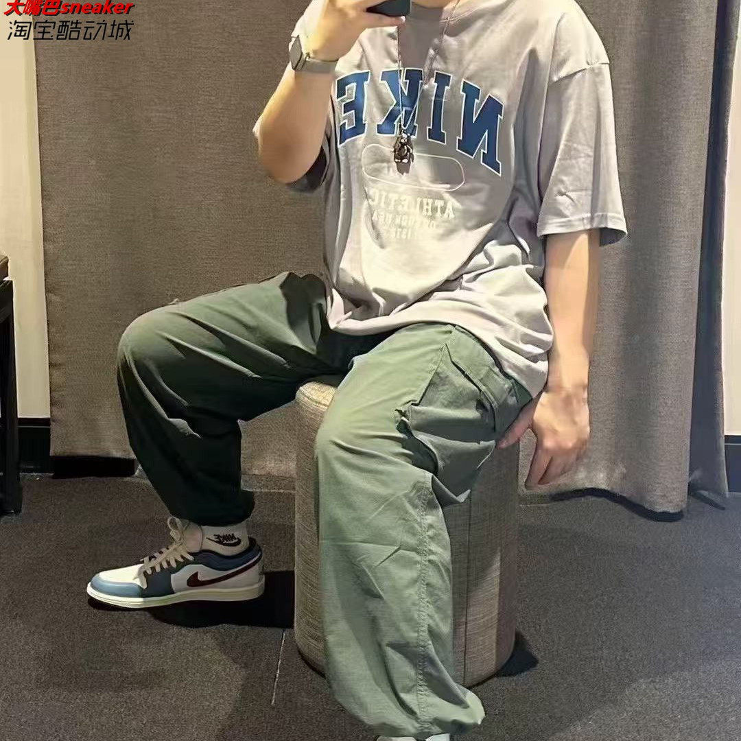 淘马登美式抽绳松紧腰工装宽松阔腿裤拖地直筒运动垂感跳舞裤子春女
