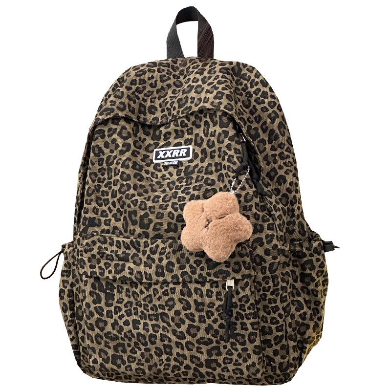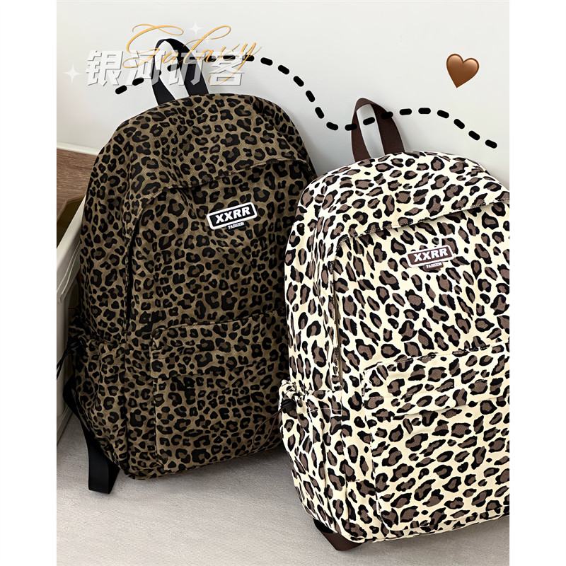 这款韩国小众复古豹纹双肩包,融合经典豹纹元素与现代实用设计,兼具潮流感与功能性。采用高品质帆布材质,耐磨耐脏,大容量主仓可容纳课本、笔记本、平板电脑等,满足大学生日常上课及短途旅行需求。多隔层设计,轻松收纳文具、水杯、雨伞等随身物品。加宽肩带与背部透气设计,背负舒适不勒肩。复古豹纹图案低调中彰显个性,轻松搭配休闲或学院风穿搭,是追求时尚与实用兼具的年轻女性的理想选择。无论是校园通勤还是周末出行,都能轻松驾驭,展现独特品味。
