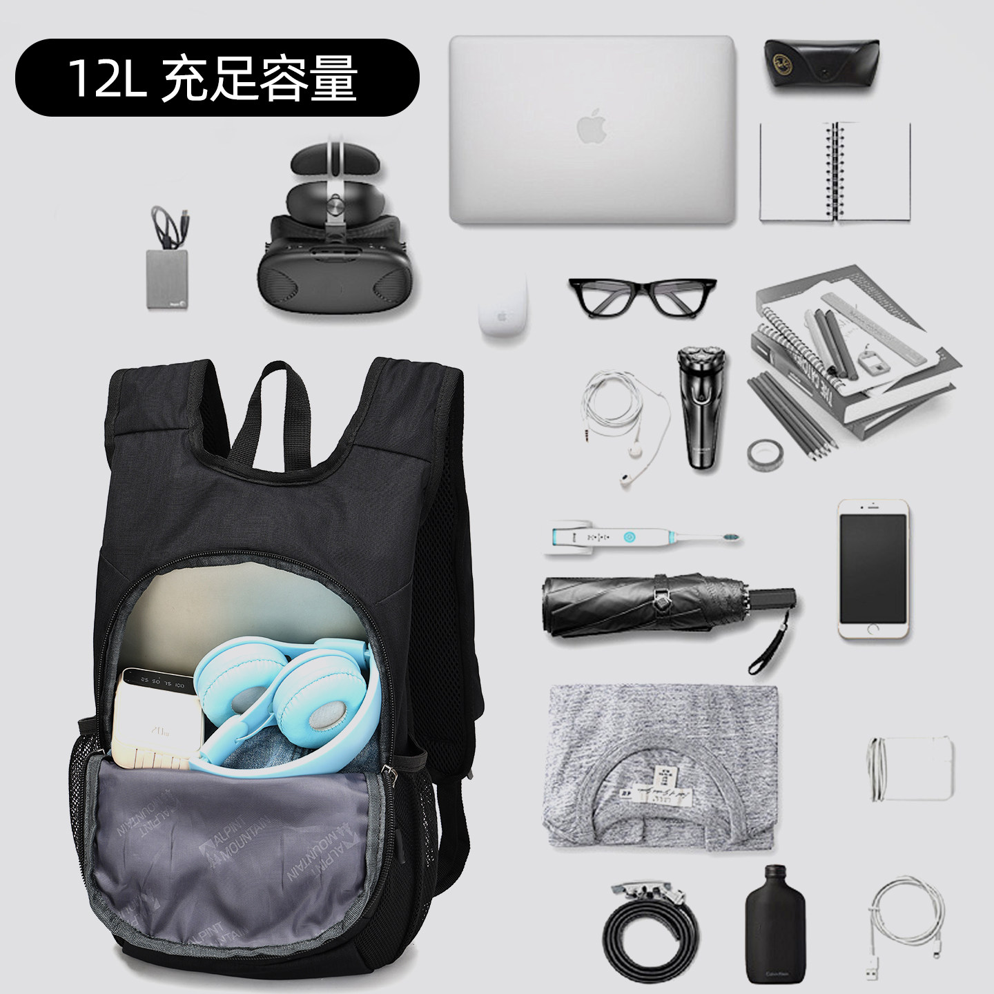 天猫埃尔蒙特12L可折叠双肩包轻便户外旅行背包通勤旅游徒步登山包