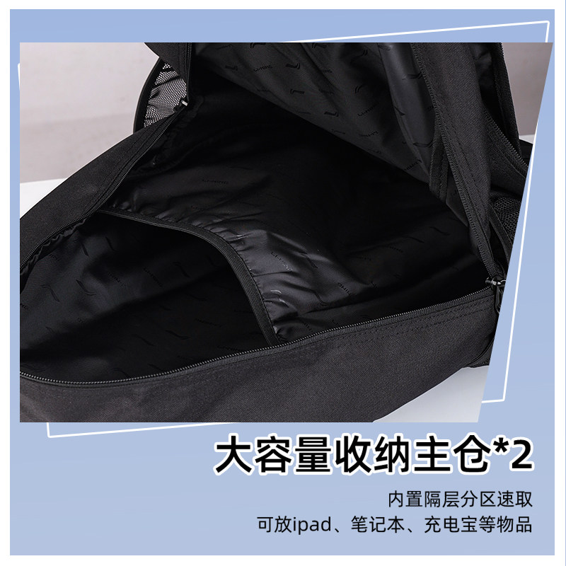李宁双肩包集时尚设计与实用功能于一体,专为初中、高中生及户外运动爱好者打造。大容量主仓搭配多隔层设计,轻松收纳课本、文具、衣物及电子设备,满足日常通勤与短途旅行需求。采用高密度耐磨面料,防水抗撕裂,适应登山、骑行、徒步等多种户外场景。人体工学肩带与透气背垫有效减压,长时间背负更舒适。侧边弹性网袋可放置水杯或雨伞,细节贴心。简约大气的外观融合李宁品牌运动基因,兼具潮流感与功能性,是学生党与户外玩家的理想选择。