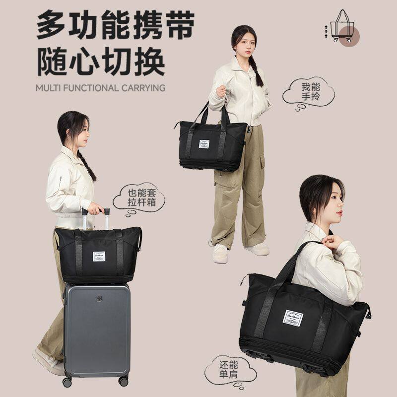 淘大容量旅行包女可折叠行李待产包收纳袋子便携手提简约短途拉杆包