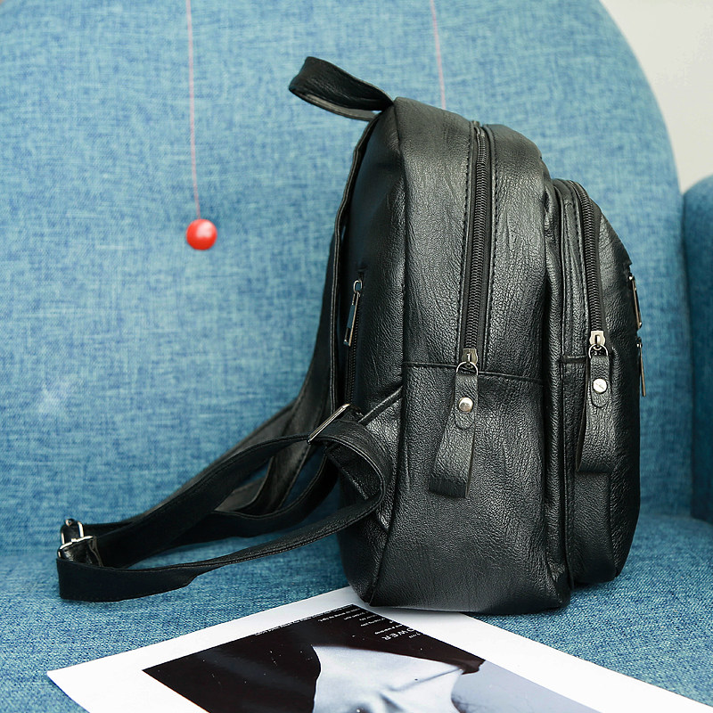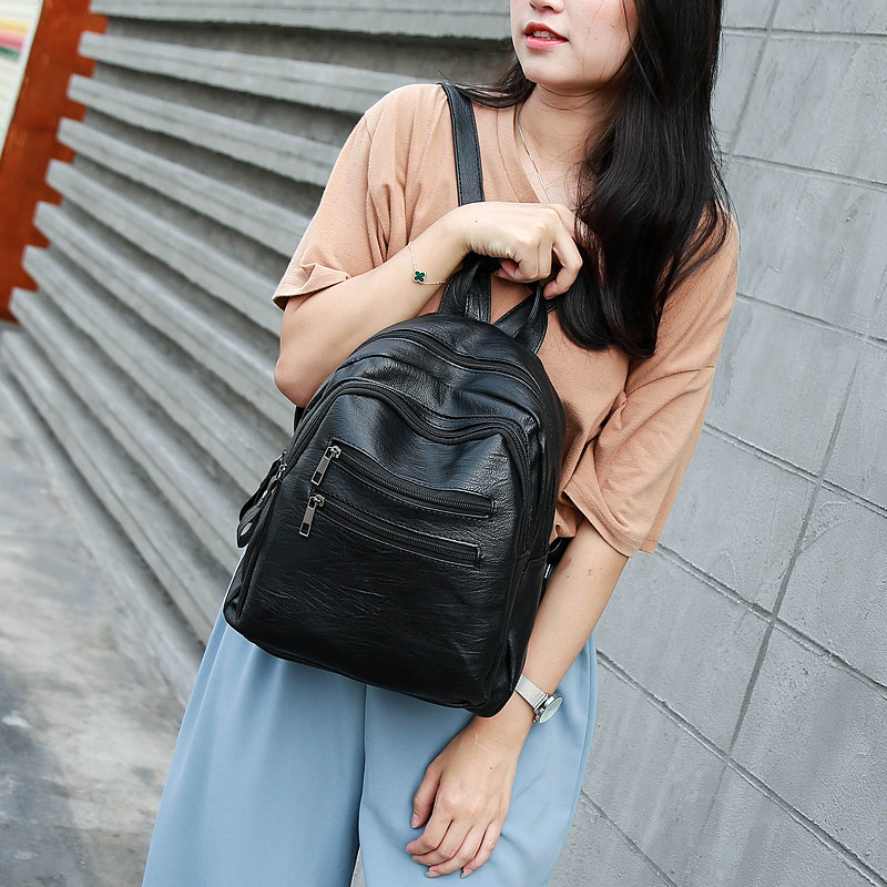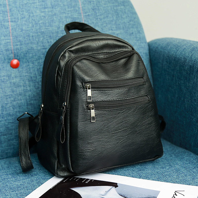 淘宝背包韩版休闲软皮双肩包学院风复古小书包女士pu皮纯色百搭旅行包