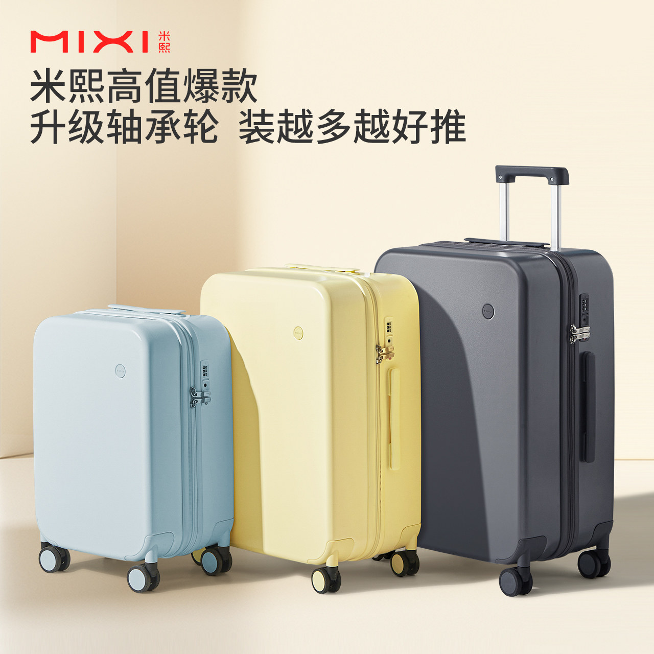 天猫米熙高颜值登机20寸拉杆行李箱女大容量24结实耐用小旅行箱子男26