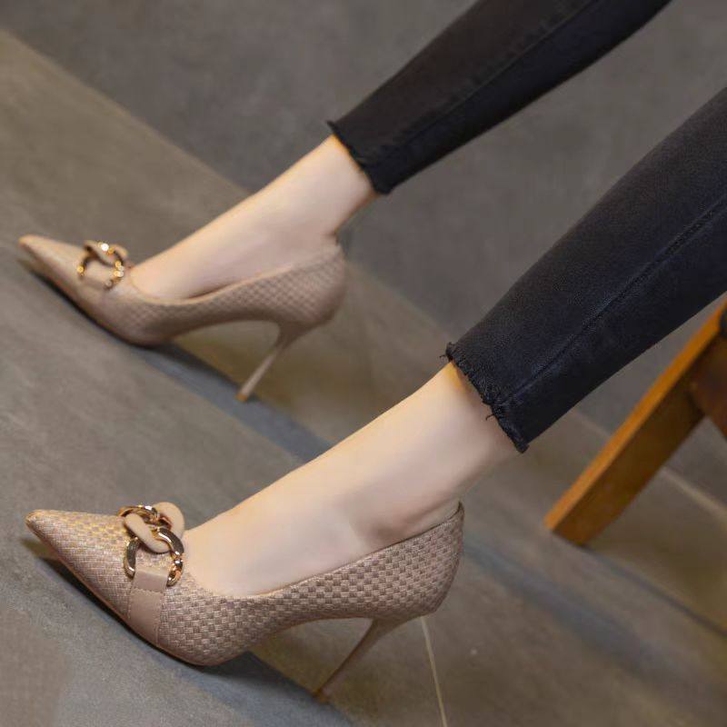 淘宝高跟鞋女2025年春秋新款尖头软皮鞋子细跟单鞋小众设计感气质女鞋