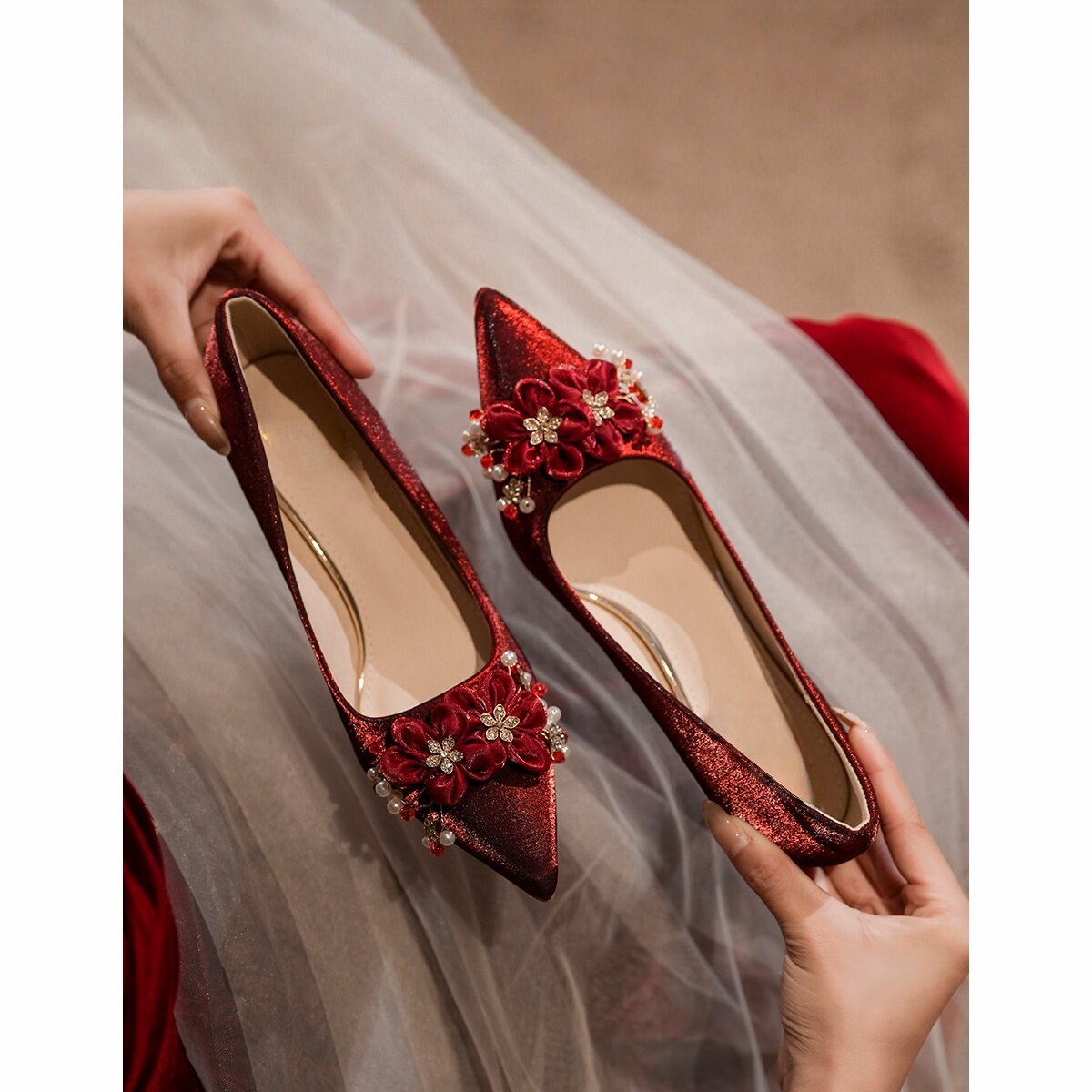 2026新款红色绸缎秀禾婚鞋,专为中式新娘打造,融合传统韵味与现代舒适。采用优质红色绸缎面料,光泽柔亮,彰显喜庆典雅;尖头设计修饰脚型,优雅显瘦。鞋面精致刺绣,寓意吉祥美满,完美搭配秀禾服。特别优化鞋垫与后跟结构,缓震支撑,即使长时间穿着也不累脚,孕妇新娘亦可安心选择。5cm舒适高跟,稳健不累,兼顾美感与实用性。无论是婚礼仪式还是敬茶环节,都能让您步履轻盈、自信动人,成为全场焦点。这款婚鞋,是传统与舒适的完美结合,见证幸福时刻。