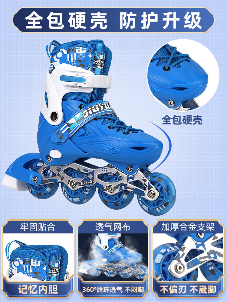 天溜冰鞋儿童全套装初学者旱冰滑冰鞋男女童孩正品专业轮滑鞋可调节