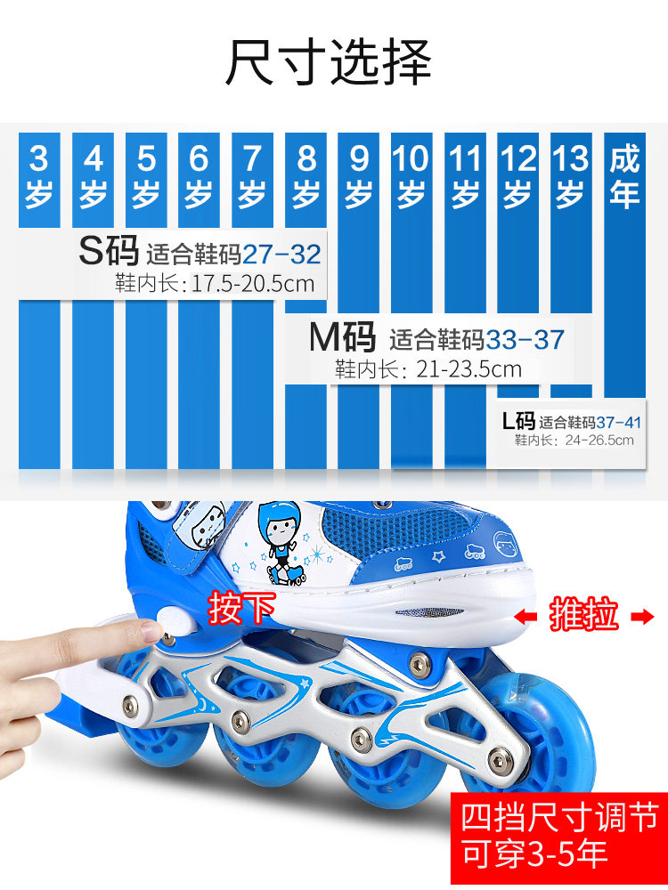 天儿童溜冰鞋女童轮滑鞋女孩3岁6到12岁初学者专业滑轮可调节大小