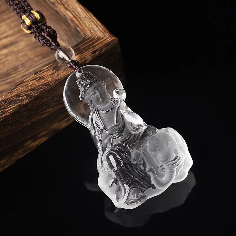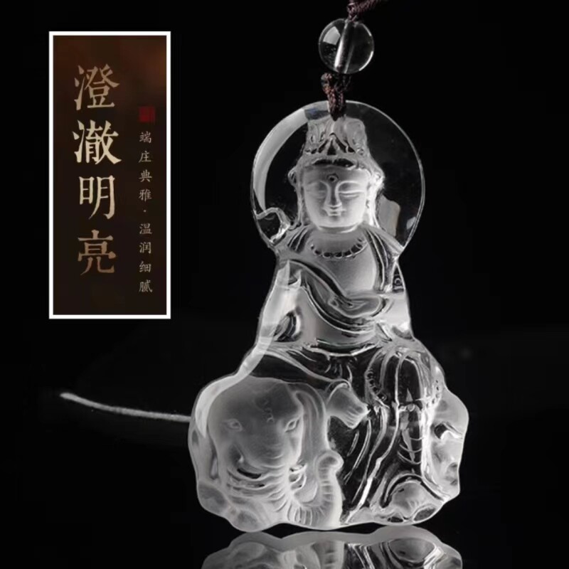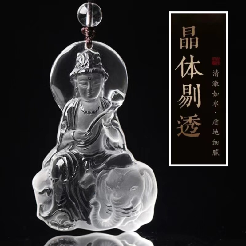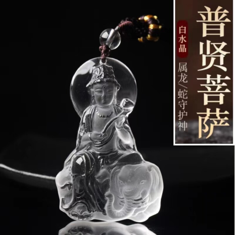 淘宝天然白水晶普贤菩萨吊坠男女款立体雕刻生肖属龙蛇守护神项链挂件
