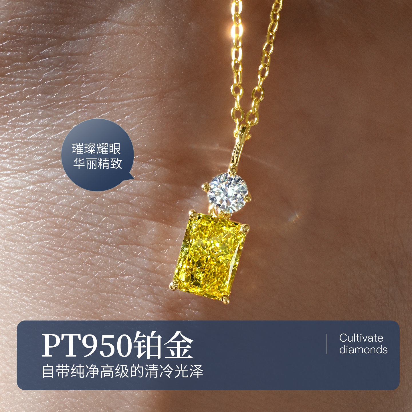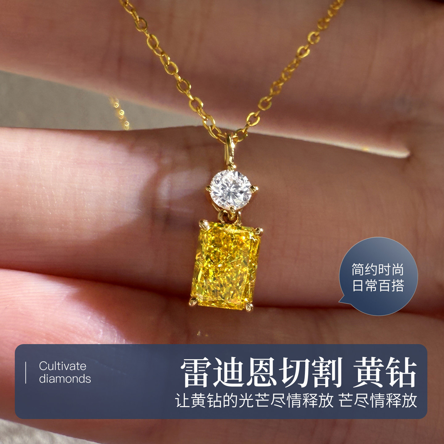 这款黄钻钻石吊坠采用高品质人工培育黄钻,色彩明艳饱满,火彩璀璨夺目,完美呈现天然彩钻的奢华质感。主钻镶嵌于18K金精工打造的经典六爪托架中,稳固显钻,凸显钻石的通透与光泽。链身选用细腻锁骨链设计,轻盈贴合颈部曲线,佩戴舒适且极具高级感。整条项链简约而不失优雅,单钻吊坠设计聚焦视觉焦点,适合日常搭配或重要场合佩戴。人工培育技术环保可持续,品质媲美天然钻石,性价比出众。无论是自用还是赠礼,这款黄钻吊坠都是彰显品味与格调的绝佳之选。