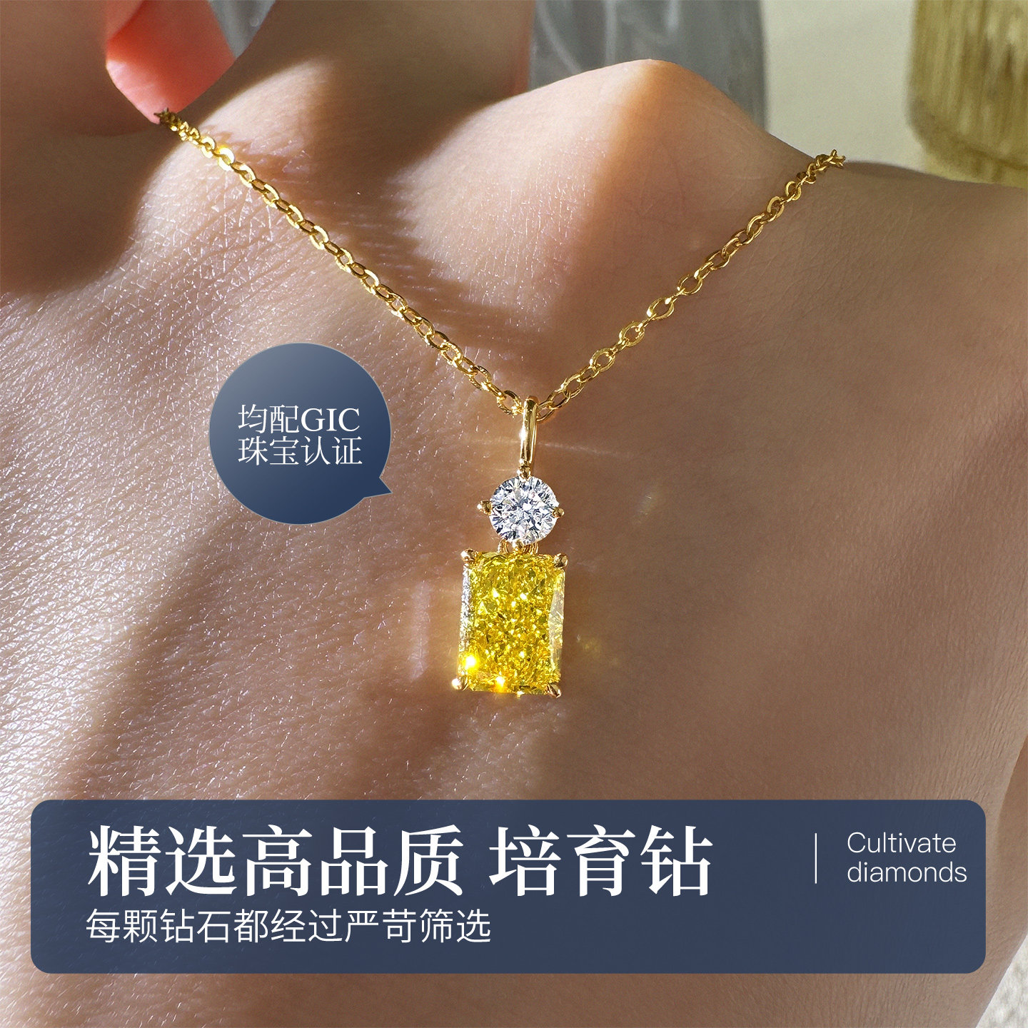淘宝黄钻钻石吊坠高品质18k金钻石项链锁骨链人工培育高级感单钻吊坠