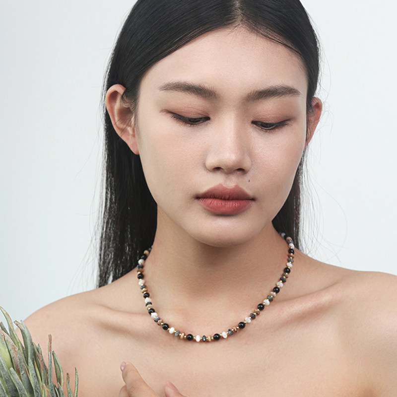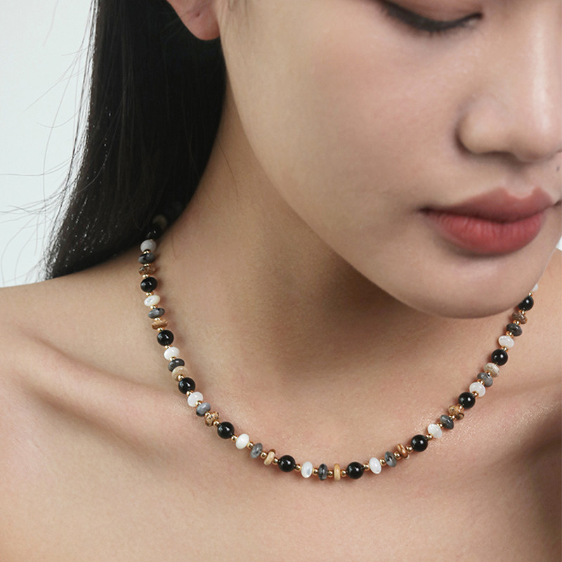 Moment原野旅行天然石串珠项链,以自然为灵感,融合简约设计与原始美感。精选优质天然石,如月光石、青金石或虎眼石,每一颗都蕴含独特纹理与能量,散发宁静质朴的气息。链条采用精致合金或编织绳设计,轻盈贴合颈部,既可作为锁骨链点缀日常穿搭,也能搭配毛衣成为吸睛配饰。整体造型兼具文艺与时尚感,适合追求个性与自然风格的你。无论是通勤、约会或旅行,这款项链都能为你的造型增添一抹诗意与灵动,是表达自我态度的理想之选。