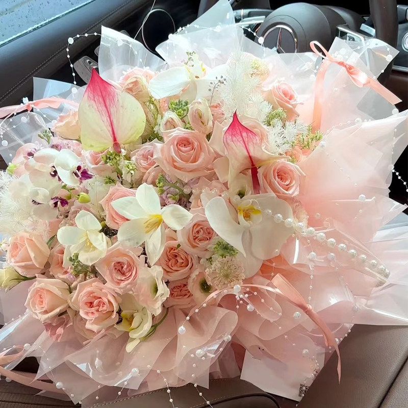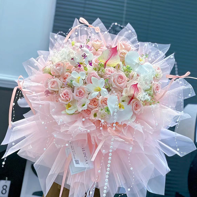 这款花束珍珠链条项链是一款精美的鲜花装饰配饰,专为花艺设计与花店资材打造。采用优质串珠与光泽柔美的珍珠链条相结合,搭配精致珠扣,细节考究,质感出众。链条设有实用穿孔,便于灵活固定在花束、花盒或花艺作品中,提升整体美感与高级感。“有钱花”寓意吉祥富贵,既可作为节日、婚庆、庆典等场合的装饰点缀,也适合日常花艺创作。适用于花店、礼品包装、新娘手捧花等多种场景,是提升花艺作品附加值与艺术感的理想配饰,兼具美观与实用性,深受花艺师与消费者喜爱。