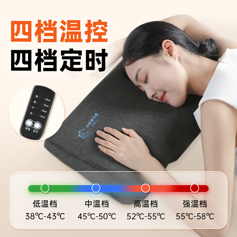 石墨烯加热颈椎枕是一款融合先进科技与人体工学设计的护颈睡眠神器。采用高品质记忆棉材质,精准贴合颈椎自然曲线,有效缓解颈部压力。内置石墨烯发热膜,通电后迅速升温,释放远红外热能,深入肌肉组织,促进血液循环,舒缓僵硬酸痛。三档温控调节,安全恒温,避免烫伤。远红外热疗兼具理疗效果,帮助放松肩颈,改善睡眠质量。枕面亲肤透气,可拆洗设计,使用更卫生。无论是久坐办公、低头族,还是颈椎不适人群,都能在温暖舒适的包裹中享受深度放松,修复睡眠,守护颈椎健康。