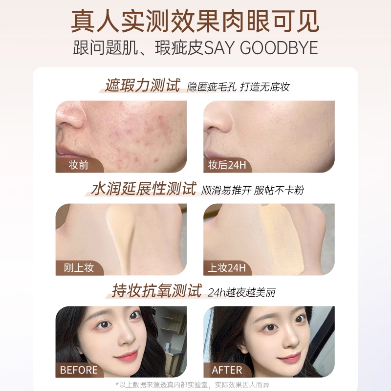 天花西子好气色粉底液遮瑕持久不脱妆控油保湿养肤bb霜持妆服帖女