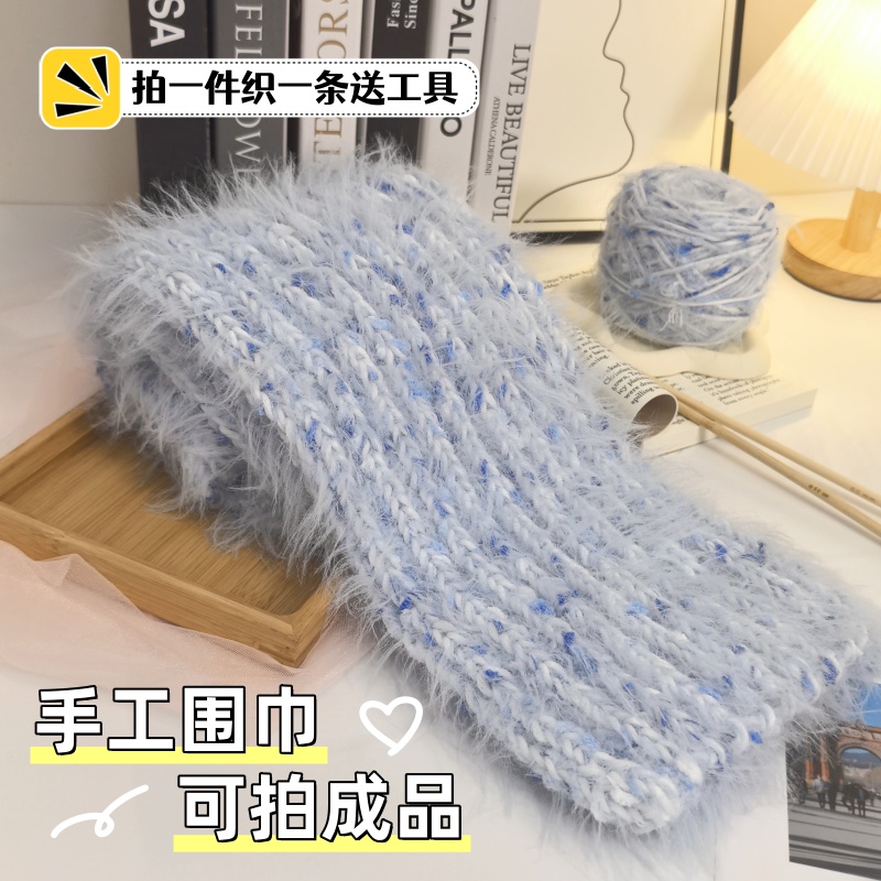 淘宝自己纯手工编织手混线礼物围巾成品渐变冬季送男女朋友氛围感围巾